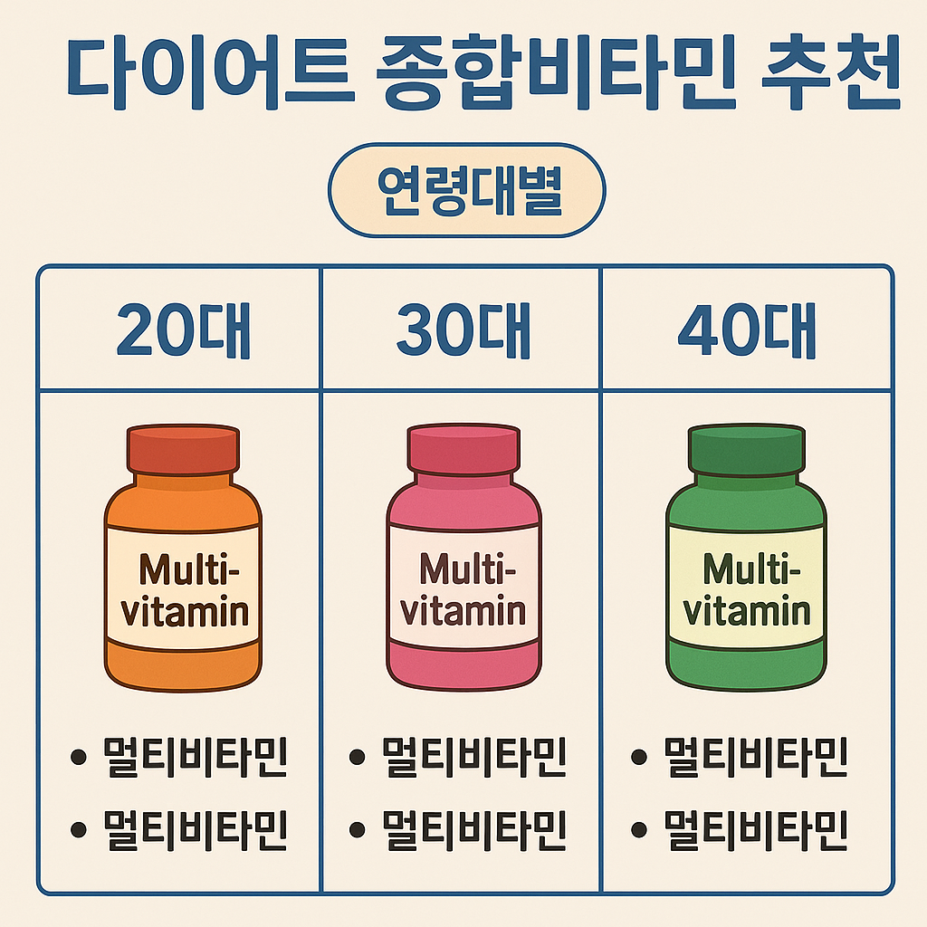 건강한 다이어트를 위해 종합비타민을 섭취하는 것은 더 이상 선택이 아닌 필수가 되고 있습니다. 하지만 모든 종합비타민이 모든 사람에게 동일한 효과를 주는 것은 아니며 특히 연령에 따라 신진대사 속도 호르몬 변화 생활 습관이 달라지기 때문에 필요한 영양소의 우선순위도 달라집니다. 따라서 나이에 맞는 종합비타민을 선택하는 것은 다이어트의 효율성을 높이는 데 매우 중요한 전략입니다. 이번 글에서는 20대 30대 40대 여성의 생리적 특성과 라이프스타일을 고려하여 다이어트 중 어떤 종합비타민이 필요한지 연령대별로 구체적으로 설명합니다.