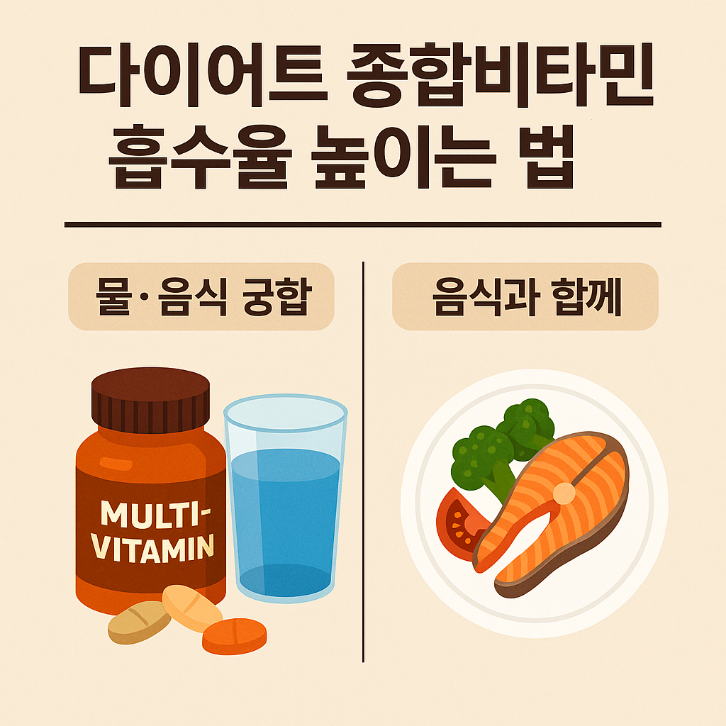 다이어트를 하며 종합비타민을 복용하는 사람은 많지만 실제로 그 효과를 충분히 누리는 경우는 많지 않습니다. 이유는 바로 흡수율 때문입니다. 아무리 좋은 성분이 포함된 종합비타민이라도 체내 흡수가 제대로 이루어지지 않으면 기대한 효과를 얻기 어렵습니다. 특히 다이어트 중에는 식사량이 적고 식단 구성이 제한적이기 때문에 비타민과 미네랄의 흡수 환경이 더욱 중요해집니다. 종합비타민은 복용 시점이나 함께 먹는 음식 수분 섭취량에 따라 체내 흡수율이 크게 달라질 수 있으며 이는 다이어트의 효율과 건강 유지에 직접적인 영향을 미칩니다. 이 글에서는 다이어트 종합비타민의 흡수율을 높이기 위한 음식 궁합과 물 섭취 요령 등 실전 팁을 중심으로 체내 영양 활용도를 극대화하는 방법을 자세히 소개합니다.