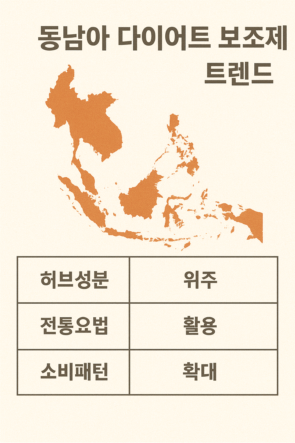 동남아시아는 다이어트 보조제 시장에서 독창적인 특징을 가진 지역으로 평가받고 있습니다. 열대 기후에서 자라는 풍부한 허브와 식물, 오랜 세월 동안 이어져 내려온 전통요법, 그리고 급성장하는 디지털 경제가 결합해 독특한 보조제 트렌드를 형성하고 있습니다. 이 지역의 다이어트 보조제는 단순한 체중 감량 기능에 그치지 않고, 해독 작용, 면역력 강화, 피부 개선 등 전신 건강을 동시에 목표로 하는 경우가 많습니다. 특히 허브성분과 전통요법은 현지인의 생활 속에 깊이 뿌리내려 있어 보조제 개발의 핵심 원천이 됩니다. 이번 글에서는 동남아 다이어트 보조제의 트렌드를 허브성분, 전통요법, 소비패턴이라는 세 가지 측면에서 더 깊이 분석하겠습니다.