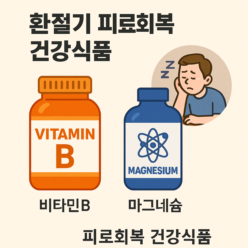 환절기는 계절의 변화로 인해 일조량과 기온 습도 등이 급변하며 우리 몸의 생체 리듬이 쉽게 흐트러지기 쉬운 시기입니다. 이로 인해 수면의 질이 떨어지거나 체력 저하가 나타나며 전반적인 피로감이 누적될 수 있습니다. 특히 아침에 일어나기 힘들고 오후에 쉽게 졸리며 집중력이 떨어지는 증상은 환절기 피로의 대표적인 신호입니다. 이러한 피로는 단순한 일시적 증상일 수 있지만 방치할 경우 만성 피로나 면역력 저하로 이어질 수 있기 때문에 적극적인 관리가 필요합니다. 규칙적인 수면 식사 운동 외에도 체내 에너지 생성과 신경 안정에 중요한 역할을 하는 영양소를 보충하는 것이 효과적인 피로 회복 방법입니다. 특히 비타민B군과 마그네슘은 환절기 피로회복에 핵심적인 역할을 하는 영양소로 신경계 조절 에너지 대사 스트레스 완화에 도움을 주는 것으로 잘 알려져 있습니다. 이번 글에서는 비타민B와 마그네슘이 어떻게 피로를 해소하는 데 도움을 주는지 그리고 섭취 전략과 복합 관리법에 대해 자세히 안내합니다.
